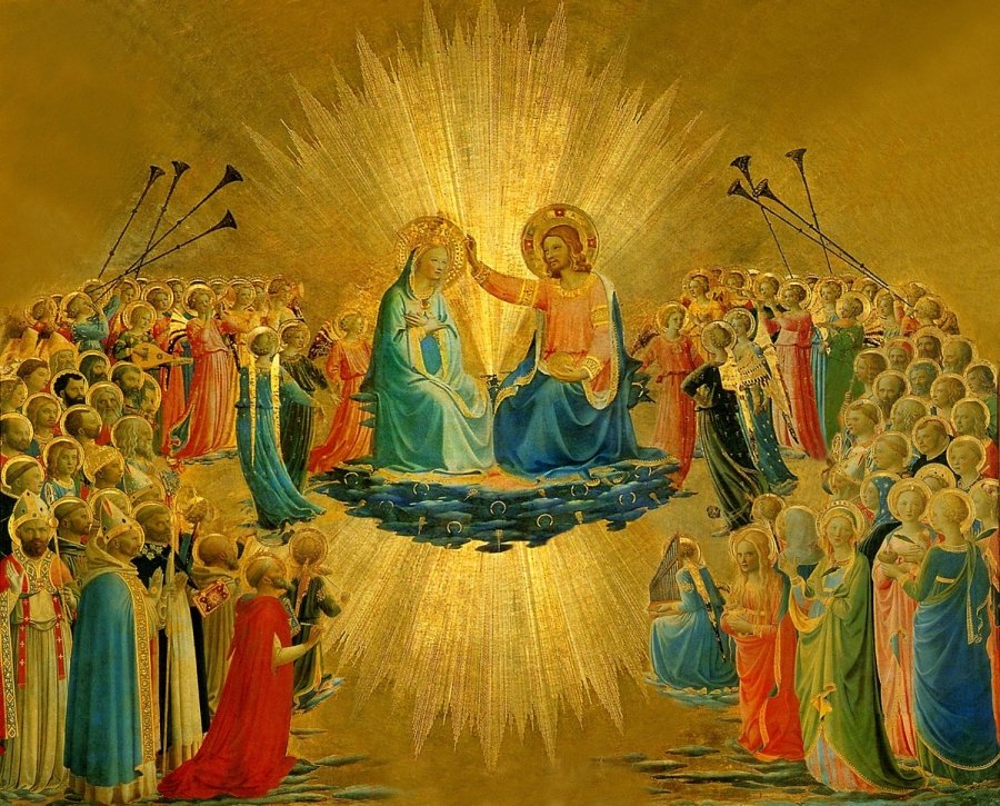 Coronation of Our Lady surrounded by the heavenly court.